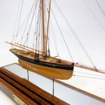 British cutter yacht, built by George L. Watson in 1878 for James Coats, Jr. of the Coats and Clark family. She was built as a racing 10-tonner, a class growing in popularity, she won a great many of her races. LWL of 38'8" and a breadth of 7'9". The model is solid wood hull of agba; limewood decking is laid & nibbed. Sloop rigged, natural hull bottom, black topsides, all basic deck gear & fittings.