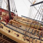 Rattlesnake gave the appearance of a much larger ship, but in fact she measured 89’3” between perpendiculars, she had a 22’ moulded beam, and 8’10 1/2” depth of hold.