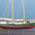 This fine ‘extreme clipper’ schooner was built by Daniel Poland, Jr. and Charles Woodbury at Gloucester c.1877 for Gloucester owners. Because of its moderate 78’ size at 67.92 gross tons it is believed to have spent its career in the mackerel seining fisheries and would not have participated in the groundfish industry of the large schooners of it day. The model shows all the deck furniture and gear relative to this vessel’s purpose and includes authentic rigging and four tightly furled sails. Research & Plans: by Charles G. Davis c. 1930.